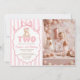 Convite Teddy Bear Girls Pink Bow Stripes 2nd Birthday