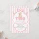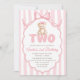 Teddy Bear Girls Pink Bow Stripes 2nd Birthday Invitation