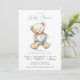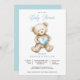 Celebrate the arrival of a little bundle of joy with a blue boy teddy bear baby shower invitation! This charming event features a whimsical teddy bear holding a heart. Also, suitable for gender neutral invites. Available in print, as a digital download, or both.