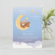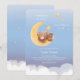 Soft sky artwork shows a cuddly bear resting on a glowing moon with gentle star accents, ideal for a nursery theme or baby shower celebration. Calm pastel tones create a peaceful bedtime mood for welcoming a little one.
