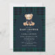 Convite Teddy Bear Navy Plaid Baby Shower Invitation
