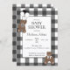 Convite Teddy Bears Black Buffalo Check Baby Shower