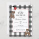 Convite Teddy Bears Black White Buffalo Check Baby Shower