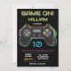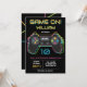 Convite Teen Gaming Gamer Video Game Player Neon Birthday