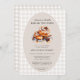 Celebre a doce expectativa de um novo bebê com o nosso encantador convite de chá de bebê "Tem um Pãozinho no Forno". Com uma deliciosa ilustração em aquarela de um rolinho de canela, fresco e cheio de calor, este design combina perfeitamente charme rústico e aconchegante com um toque moderno. Contra um fundo xadrez suave e neutro, combina tipografia clássica e cursiva, criando um convite acolhedor para essa ocasião especial. Seja para dar as boas-vindas a um menino, menina ou mantendo a surpresa, este convite lindamente elaborado define o tom para uma reunião emocionante repleta de amor, risadas e a promessa de novos começos.