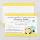 Celebre o chá de bebê em homenagem à futura mamãe com este convite de chá de bebê de abelha bumble fofo em amarelo e preto. O design inclui uma adorável abelha voando com um rastro de amor, um padrão de favo de mel hexagonal, um menino bebê fofo vestido de abelha dormindo feliz e texto espirituoso que brinca com o tema da abelha como "Mamãe-em-Ser". Personalize facilmente com os detalhes da sua festa.