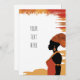 Celebre a beleza cativante da África com nosso convite/anúncio temático africano, apresentando impressionante arte digital da silhueta de uma mulher africana graciosa adornada com roupas tradicionais. As cores terrosas exibem elegantemente a calidez e a riqueza do continente, criando um design encantador que define o tom perfeito para sua ocasião especial.