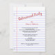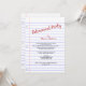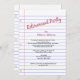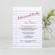 Esta réplica de uma folha de papel looseleaf é uma maneira divertida de convidar pessoas para uma festa de tema escolar. Adequado para a aposentadoria de um professor ou de qualquer funcionarios escolar. O cartão é fácil de personalizar com seu texto, fonte, cor da fonte e escolha de seis tipos de papel. Não exatamente o que você está procurando? Todos os nossos produtos podem ser personalizados para atender às suas necessidades sem custos adicionais. Basta entrar em contato conosco em askcottonlamb@gmail.com Coordenando os produtos disponíveis: