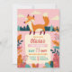 Tema da Floresta de Festa de aniversário de Raposa, convite de festas de Garota Rosa. Um convite divertido para qualquer idade! Impressão traseiro incluído.