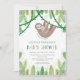 Celebre a minha mãe com estes bonitos convites para o chá de bebê de preguiça! Com uma adorável mãe pintada à mão e preguiça-bebê abraçando na selva. Vinhas balançando, doces e suaves folhas de selva verde decoram o fundo. O fundo tem um padrão de folha verde claro e escuro.
