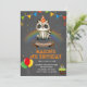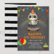 Convite tema de aniversário de guaxinim arco-íris