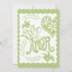 Inspirado pelas maravilhosas faixas de fiesta mexicanas de papel tecidular que são cortados à mão em deliciosos padrões de arte folclórica, este conjunto de convites é feito para ser misturado e combinar cores brilhantes. Perfeito para um estilo rústico de celeiro ocidental, jardim ao ar livre, primavera de campo ou celebração de casamento de verão sob as árvores. Altere a cor frontal ou traseira usando o seletor de mudança de cor ou nós podemos ajudar se você precisar dela, apenas nos mande mensagem. Os elementos de design desenhados à mão incluem os elementos da coroa das folhas de louros, as aves bonitinhas da pomba branca, um coração com flores e folhas e uma aresta escaldada. No verso estão as palavras escritas manualmente "viva el amor" ou "ama viva". Arte original e design gráfico autoral Audrey Jeanne Roberts. CORES: colhe ouro amarelo-mostarda, azul-claro-azul-céu-piscina e branco.
