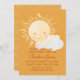 Aquarela Sunshine amarelo. Rosto amigável Sol na frente de uma nuvem fofa, apoiado em um dourado brilhante. Texto personalizado para o seu evento e todo o texto pode ser personalizado, bem como a cor do fundo.