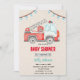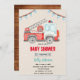 convite tema de chuveiro de bebê de bombeiro de caminhão de bombeiros