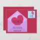 Uma proposta fofa de madrinha do tema do coração, este convite apresenta um fundo de cor fuchsia com um gráfico de envelope de lavanda com dentro do coração. Personalize o texto. Há uma ilustração de um coração com "amor" escrito em letras maiúsculas. Compre o seu hoje! Gráficos: Design por Huckleberry Hearts, LLC, © www.Huckleberry-Hearts.com