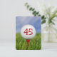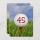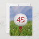 Feche uma bola de golfe branca sobre uma teta vermelha na grama para o 45º convite de aniversário.