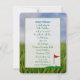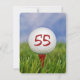 Feche uma bola de golfe branca sobre uma teta vermelha na grama para o 55º convite de aniversário.