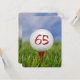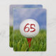 Feche uma bola branca de golfe sobre uma teta vermelha na grama do 65º convite de aniversário.