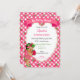 Convite temático de morango com menina. Use para Chá de Bebê, Aniversário ou festa temática.