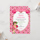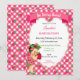 Convite Tema de Morango Menina Gingham Rosa Verde