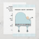 Convites criativos para chás de bebê com bebê menino fofo e piano de cauda único projetado como um carrinho de bebê para a futura mãe musical.