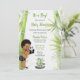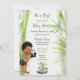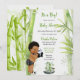 Tema de panda e bambu em preto, branco e verde. Bebê menino em fralda com estampa de bambu com pantufas de panda e gravata borboleta, segurando um ursinho de pelúcia panda. Perfeito para chá de bebê ou aniversário.