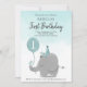 Convite Tema do Balão de Elefante Branco Azul do Céu Perso