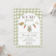 Celebre a chegada do seu pequeno com este charmoso convite de chá de fraldas "Locally Grown". Apresentando gingham verde macio, cenouras aquáticas, roupas de bebê e sotaques rústicos, este convite mistura perfeitamente o estilo da fazenda com um tema de jardim doce. Ideal para celebrações neutras em relação ao gênero, chás de chic no país ou festas inspiradas fazenda a mesa. Personalize os detalhes para criar uma manutenção memorável para os convidados.