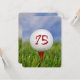 Feche uma bola branca de golfe sobre uma teta vermelha na grama do 75º convite de aniversário.