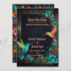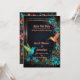Celebre seu dia especial com este elegante convite de casamento, com dois beija-flores vibrantes em voo de médio, rodeados por flores tropicais exuberantes e folhagem delicada. O fundo botânico escuro adiciona um toque de sofisticação, enquanto a intrincada borda floral com tons ricos de azul, vermelho e laranja cria um contraste impressionante. Acentuado com uma sutil armação de ouro, este design exude romance e beleza eterno, perfeito para casamentos intelectuais, jardins ou temáticos tropicais. Deixe este trabalho de arte elegante dar o tom para sua celebração inesquecível.