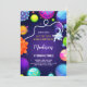 Passem para a diversão de aniversário com este convite colorido da galáxia espacial! Com um foguete, estrelas, planetas e um fundo de galáxia brilhante, este design editável é perfeito para jovens exploradores espaciais. Personalize o nome, a idade e os detalhes da festa do seu filho usando as ferramentas fáceis de design do Zazzle. Ideal para foguetes, astronautas ou festas de aniversário espaciais.