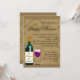 Convites de chá de panela modernos, ricos e elegantes do tema do vinho contemporâneo! Personalizar todo o convite online, incluindo a imagem do rótulo da garrafa de vinho. Vinhos marrons arenosos com garrafa de vinho e vidro, vidros sujos de fundo, com anel de casamento de diamante solitário.