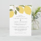 Celebre o seu dia especial com este convite de casamento com tema limão maravilhosamente desenhado. Apresentando um charmoso trio de limões com folhas verdes esmagadas e uma delicada flor no topo, este convite expele uma elegância nova e inspirada no Mediterrâneo. Os nomes da noiva e do noivo são exibidos na tipografia da na moda, adicionando um toque de eterno. O fundo branco nítido melhora a sofisticada estética, enquanto a parte de trás do cartão apresenta uma tonalidade amarela-limão vibrante. Perfeito para casamentos de verão, cerimônias de jardim ou celebrações rústicas do interior. Totalmente personalizável para combinar com seus detalhes de casamento.