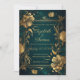 Um convite de casamento tema luxuoso dourado e verde.