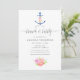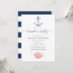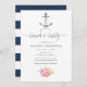 Marinho de tendência e brunch náutica branca e convites à espinha com cor de água, com ancoragem floral, flores e faixa de marinho no verso.