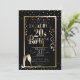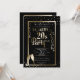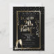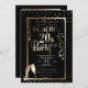 Este tema dos anos 20 traz o convite de festas de Ano Novo com design preto e ouro. O fundo do convite é preto e o texto e as imagens são impressos em ouro brilhante. Uma imagem metálica brilhante de ouro aparece no centro com todas as informações do partido. Os pontos de confetti são colocados perto da parte superior e inferior, e dois flautas de champanhe dourados são recursos no canto inferior esquerdo. Várias galerias e peças de confete são colocadas em ambos os lados do texto. Um exemplo de nome de host é impresso no topo seguido de "Roaring 20s new Year's Eve Party" (Grupo de Ano Novo) impresso em fontes retroradas ou de estilo de vintage. As informações de terceiros restantes podem ser personalizadas para incluir suas próprias informações. Anel no novo ano de 2020 e na nova década com uma celebração incrível e memorável.