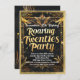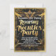 Cartões de convite festivos e divertidos para um evento especial do tema "Vinte e Vinte Anos" de 1920, mulheres noturnas em aniversário social, adulto ou qualquer ocasião. Belos design de ouro e arte negra com penas e formas geométricas, design. Celebre seu aniversário de 30 anos, aniversário surpresa ou qualquer ocasião com uma festa de fantasia divertida. Este belo convite é uma forma excelente de celebrar um aniversário para as mulheres, para ela, senhoras e noites fora num restaurante ou em qualquer lugar. Linda arte aérea generativa guiada por costumes.