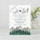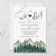 Este belo convite para o casamento apresenta uma aquarela rústica de um pomar de pinheiros verdes e profundos com montanhas atrás deles. O texto é simultaneamente caprichoso e romântico, com a inscrição moderna na escrita com as palavras "Nós Fazemos!" no topo e um coração bonito entre eles. Perfeito para uma cerimônia de destino ao ar livre ou montanha!