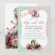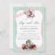 Rosa, hortelã, burgundy e dourado rosa em aquarela floral convite de chá de bebê da Alice no País das Maravilhas personalizável para os detalhes do seu evento.