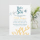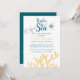 Convites de Bebê neutros em termos de gênero para o Oceano com uma das cores oficiais do ano 2018, Oceanside, coincidente com Honey Bees e Adrift.