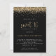 Tendy Dourada Glitter Sweet 16 Festa de aniversário Black. Um toque de brilho para a sua festa dos Dezesseis Doçosos, com falsa borda de ouro no topo de cada lado, e o doce 16 está em uma escrita manual definida em preto clássico. Personalize facilmente o resto do texto para seus próprios detalhes. Você também pode alterar as cores do texto e do plano de fundo por meio da opção personalizar mais, se desejar.