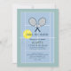Esse belo convite de aniversário do "Game, set, match!" do garoto apresenta um par de raquetes, uma bola no fundo do tênis em azul e verde. O verso apresenta um fundo azul marinho com bolinhas brancas. Personalize para suas necessidades. Você pode encontrar mais produtos correspondentes na minha loja.