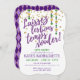 Que os bons tempos rolem! Este convite colorido ostenta um tema festivo de Mardi Gras. Uma tipografia divertida em letra cursiva com brilho falso roxo escreve as palavras 'Laissez Les Bons Temps Rouler' (Deixem os bons tempos rolarem) acentuadas por confetes com aparência de brilho dourado e cordões de contas em roxo, verde e dourado. Personalize a frente com os detalhes da sua festa usando os modelos de texto fornecidos. O verso é impresso com um padrão harlequim em tons de roxo e é acentuado com uma flor-de-lis dourada. Visite minha loja para outros acessórios de festa combinando.