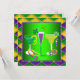 Convite de festa roxa, verde e dourada divertida para o Mardi Gras. Essas cores tradicionais e coloridas do Mardi Gras, roxo, dourado e verde, apresentam três drinques do Mardi Gras completos com colar de contas, máscara e Fleur De Lis. Esse convite de festa colorido de Mardi Gras funciona bem para um convite de festa da Terça-Feira Gorda, convite de festa de máscaras, convite de festa de Carnaval ou qualquer outra festa ou evento com tema de Mardi Gras. Este é um modelo de design e é facilmente personalizado para a sua festa ou evento, basta escolher o botão "Personalize!" para começar a adicionar os detalhes do seu evento, estilo de fonte, tamanho e cor da fonte e texto. Por favor, note que - todos os enfeites de bolo, cartões e convites que você encontrará no Zazzle são gráficos impressos sem joias,