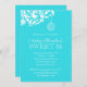 Uma elegante maravilha de inverno, doce convite de aniversário 16. Apresentando uma espiral e um Enfeites de natal brancos floreados sobre um fundo azul-lacrimogêneo. Personalize facilmente a sua festa.