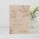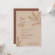 Convide amigos e familiares para uma celebração de casamento virtual com este convite simples e elegante de save the date com esquema de cores terracota terroso e design de folhas esboçadas. Personalize com os detalhes do seu casamento.