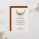 Convite de casamento floral rústico e chifres de veado. Com belos detalhes de ferrugem, terracota, rosa beije e verde musgo, grama pampas e eucalipto em aquarela. Este convite de casamento moderno certamente definirá o estilo para o seu grande dia.