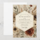 Embrace an earthy and romantic atmosphere with this stunning bohemian design. A beautiful arrangement of muted terracotta, cream, and sepia-toned anemones and ranunculus blossoms creates a lovely composition. Wispy pampas grass and delicate dried botanicals create a warm, autumnal, and rustic aesthetic for your special day.