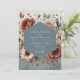 This design features a romantic and artistic arrangement of painterly botanicals. Lush blooms in warm shades of terracotta, rust, and dusty peach softly emerge from a muted slate blue background. The flowers, reminiscent of anemones and roses, are paired with delicate, dusty green foliage, creating a beautiful and moody bohemian composition.