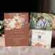Moderno encontra-se rústico com este convite de casamento floral de terracotta. Projetado com um roteiro elegante, flores aquáticas em tons de outono e uma foto do casal, ele inclui um conveniente código QR para RSVP fácil e informações sobre casamento. Personalize sem esforço no Zazzle.